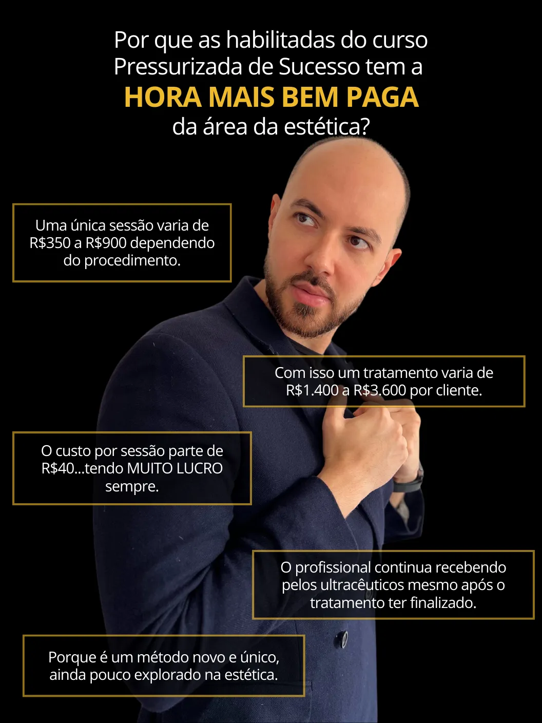 As sessões variam de R$350 a R$900, num atendimento de 30 a 60 minutos. Ou seja, MUITO LUCRO PRA VOCÊ!