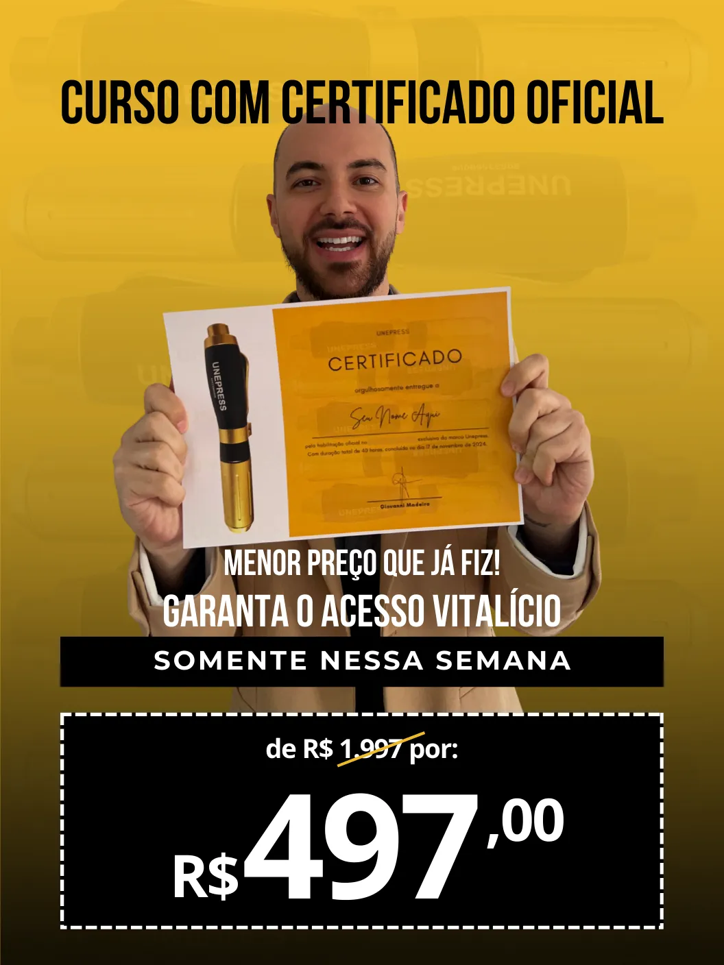 VALOR PROMOCIONAL SOMENTE NESSA SEMANA.O investimento no curso é de R$1.997 por R$497 à vista ou 12x R$47.